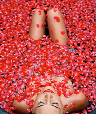 To Make: Draw a warm bath. Add the Rose petals (or any type of pesticide-free edible flower) or Rose Water and Coconut Milk.